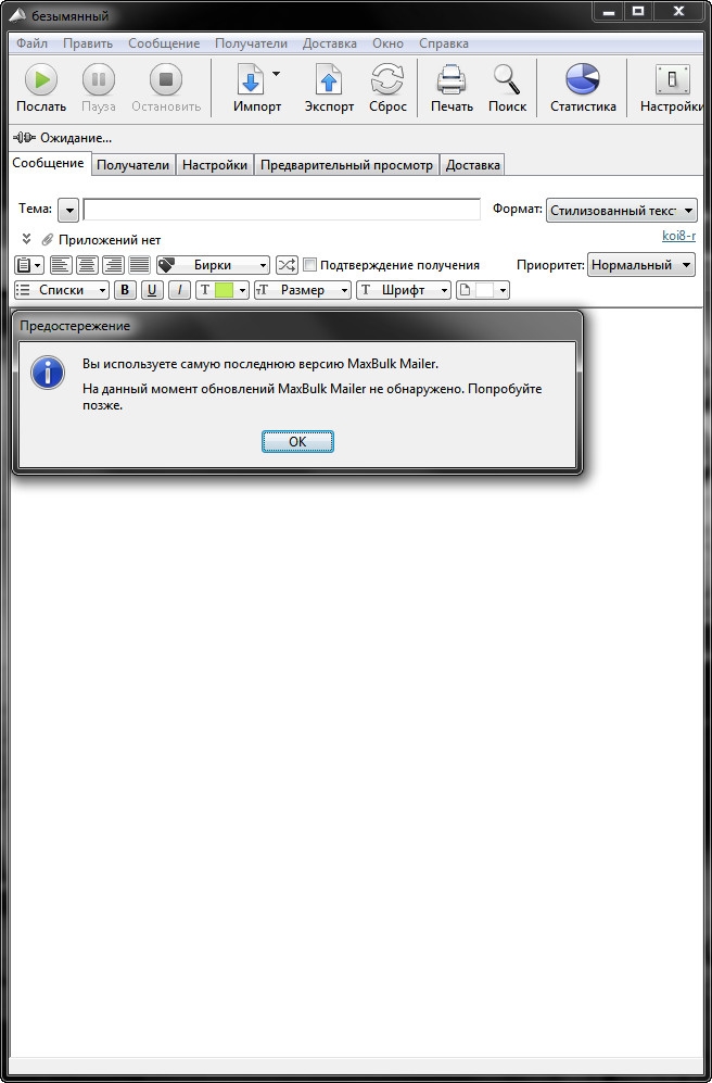- Поддержка "перетаскивания" мышью при работе со списками получателей и текстом рассылки.