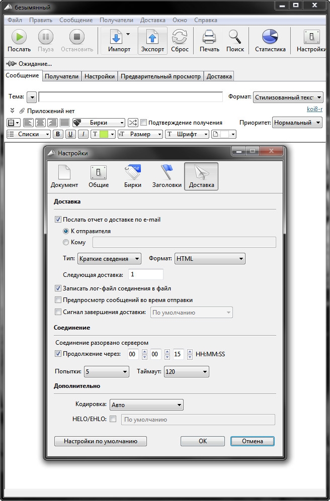 - Посылка писем в форматах текст/HTML с гарантией того, что у получателя письмо будет выглядеть так же, как у вас на компьютере.