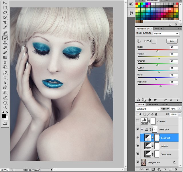 Photoshop 5.0 – признанный лидер среди растровых редакторов, богатейшие возможности для создания коллажей благодаря технологии слоев и каналов. Большое количество встроенных фильтров спецэффектов плюс возможность установки дополнительных, разработанных другими фирмами (часто распространяемыми в виде бесплатных или пробных версий через Интернет), позволяют, например, создать заголовок, охваченный огнем. В 5-й версии появились «магнитные» варианты старых инструментов «Лассо» и «Перо», значительно облегчающих работу.