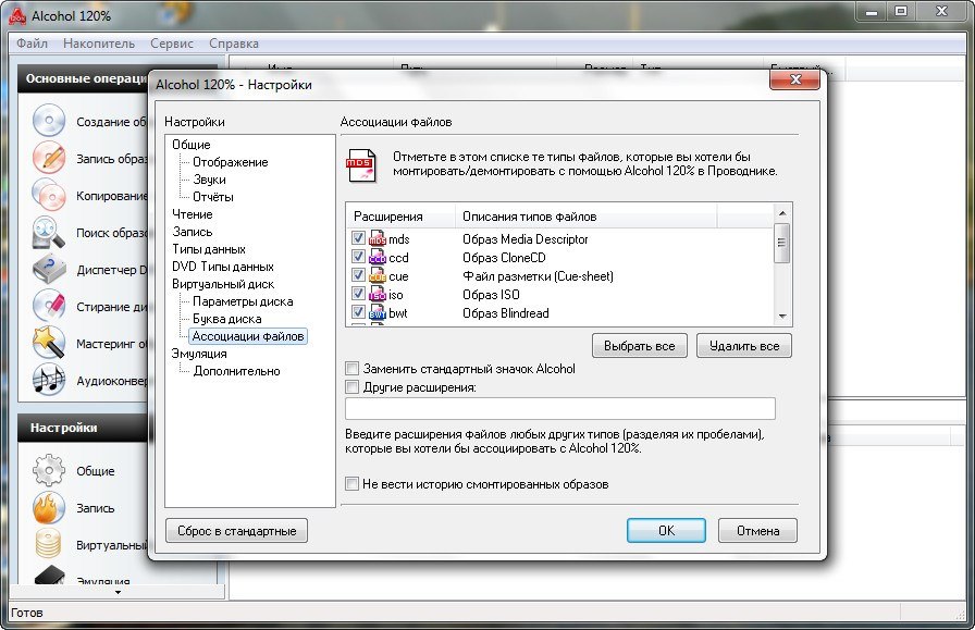 Поддержка форматов образов MDS, CCD, BIN/CUE, ISO, CDI, BWT, B5T, B6T, BWI, BWS, BWA, ISZ